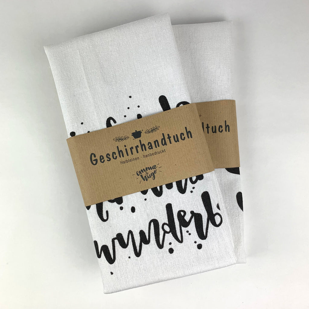 Dieses hochwertige Geschirrtuch aus Halbleinen macht jede Küche noch interessanter. Das selbst entworfene Design wurde in Handarbeit im Siebdruckverfahren auf das Geschirrhandtuch gedruckt.